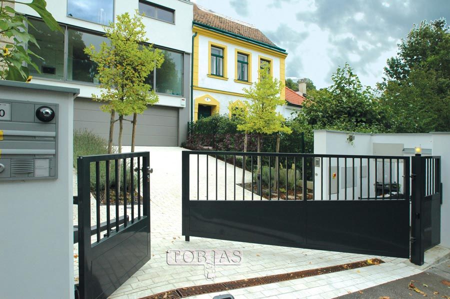 Das elektrisch betriebene, zweiflügelige TOBIAS Drehtor Type FreeWay wurde speziell für schmale Hauseinfahrten entwickelt, die für den PKW vollständig geöffnet werden sollen, und trotzdem die Öffnungsmöglichkeit nur eines Flügels für Fußgänger bieten soll, ohne über eine untere Schwelle steigen zu müssen. Die Toranlage ist mit zwei Drehtor-Antrieben ausgerüstet und der Gehflügel erhält zusätzlich eine Sonder-Gehtür-Freilaufkonstruktion, System „TOBIAS-FreeWay“, gebrauchsmustergeschützt GM 595/2005.